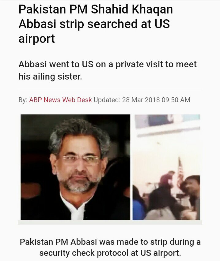 #ShahidKhaqanAbbasi को हवाईअड्डे पर नंगा कर कुलभुषण जाधव के परिवार वालोँ से किये बदसलुकी का बदला ले लिया don't mind ये वहाँ का रिवाज हैThanks. Twitter will use this to make your timeline better. UndoUndo
