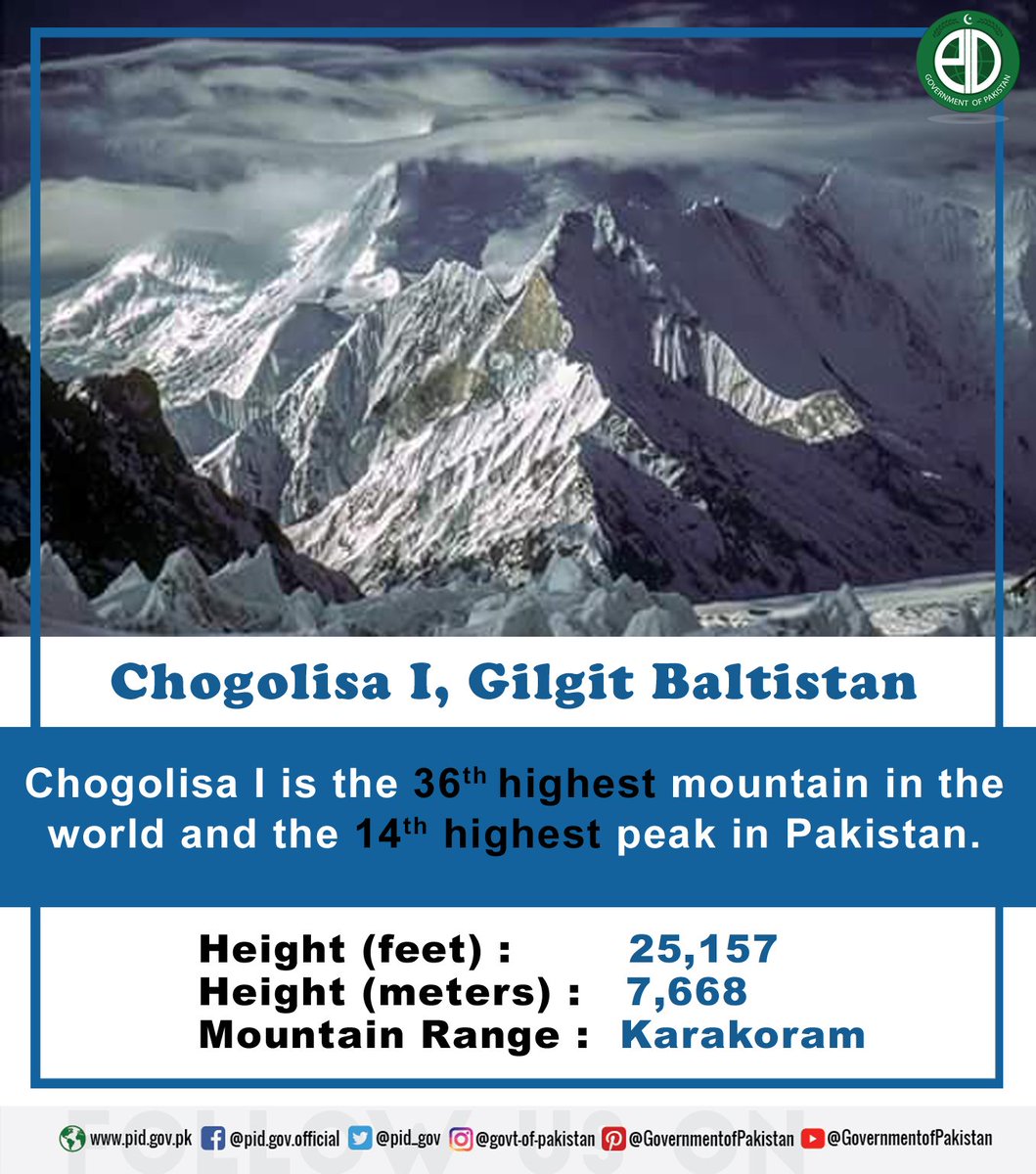 #Pakistan is blessed with a long range of #mountains that are an attraction for geologists and mountain climbers from all over the #world, #Chogolisa I is one of them.