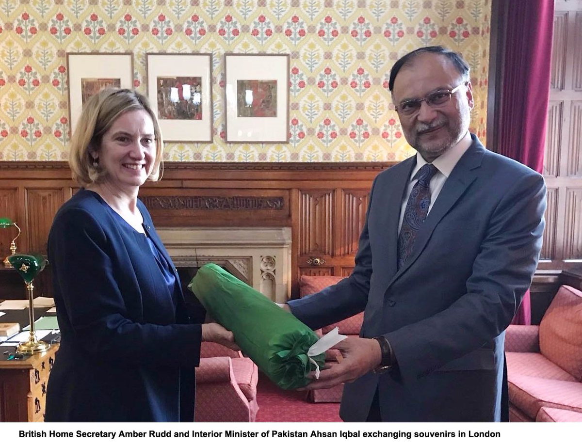 Interior Minister Ahsan Iqbal held a meeting with British Home Secretary Amber Rudd at the House of Commons. The two sides discussed a wide range of issues of mutual interest. Secretary Amber Rudd expressed her desire to further enhance cooperation between the two countries.pic.twitter.com/lpgW9pqqa5