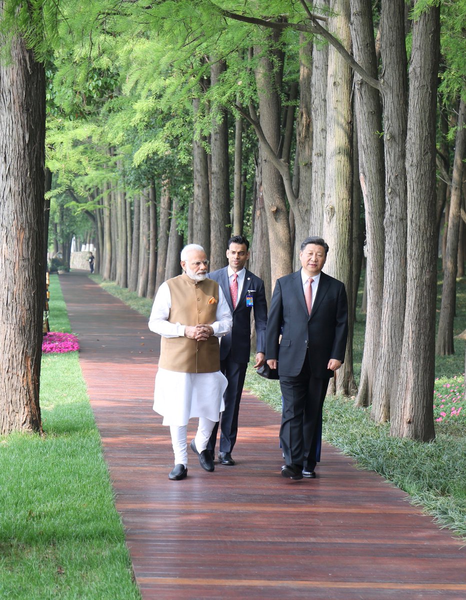 President Xi Jinping and I continued our deliberations this morning. Here are some pictures from the walk along Wuhan’s East Lake. We discussed multiple aspects of bilateral ties between our nations. pic.twitter.com/taxMLKdMq0