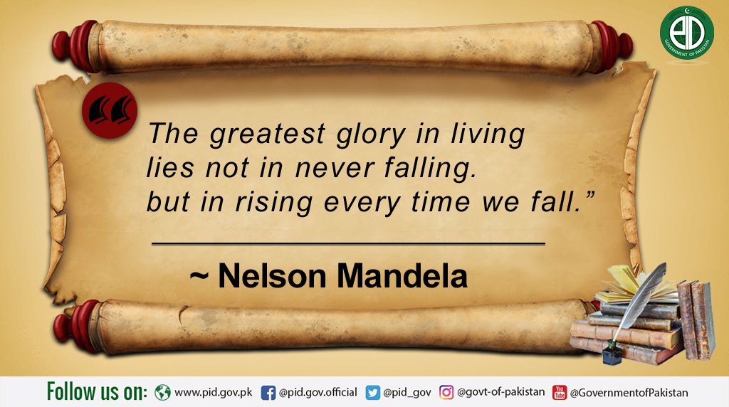 hamare Pakistan me koi shair ya sofi Alim mufakir kam he k english me nelson mandela ka qote likha he . Govt pakistan ka page he to har cheez Pakitan ki hi share karo bhai