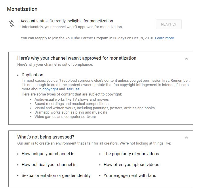 Why does this keep happening? Do Youtube just not care about memes and fair use?https://twitter.com/kmlkmljkl/status/1044453003162537989 …