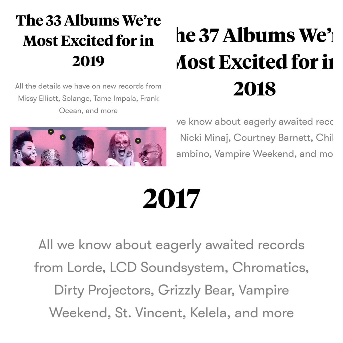 Frank Ocean, Deerhunter, Danny Brown, Yhandi, Tame Impala, Run the Jewels 4, Vampire Weekend, Raconteurs, and Vince Staples. Fuck yeah