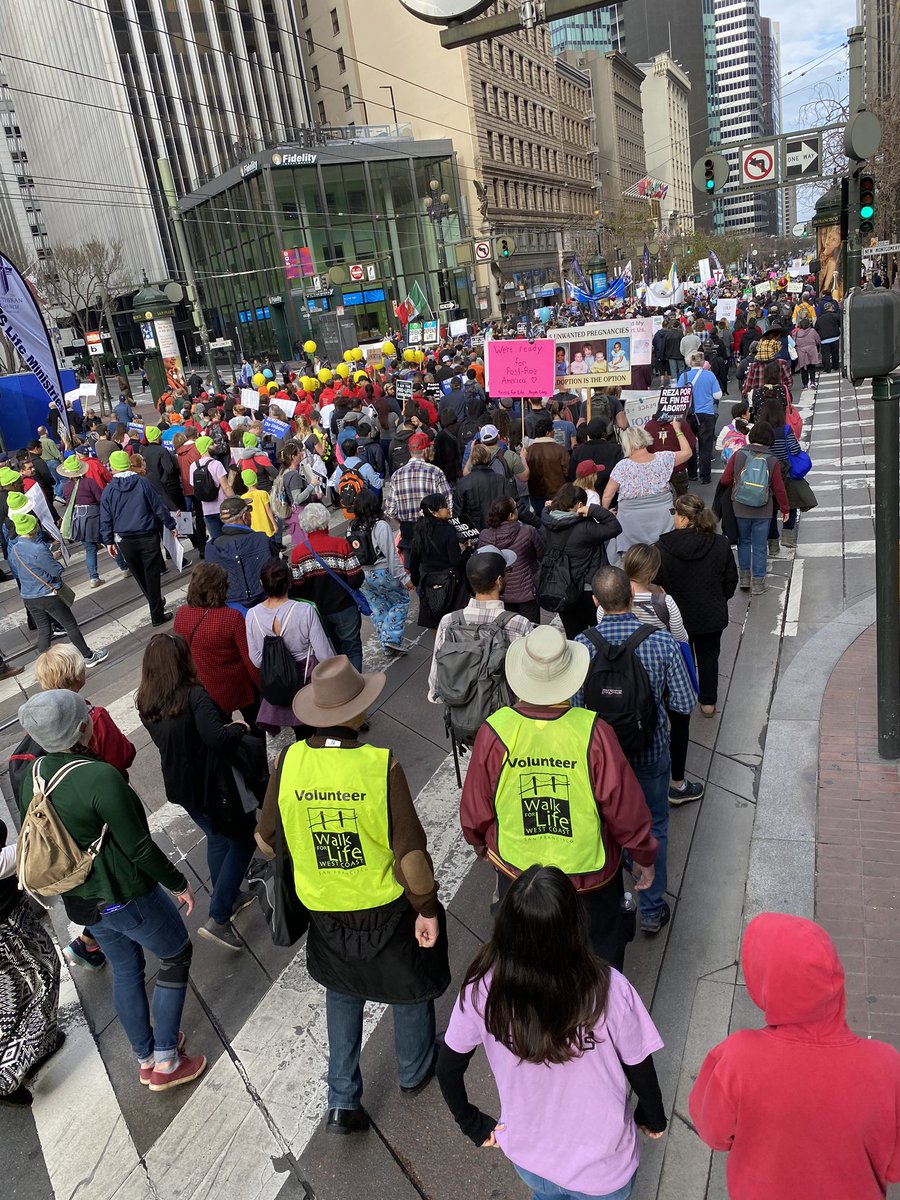 There are 10k+ pro-life marchers on Market street in San Francisco (also lots of “stop teaching evolution” signs). Where did these ppl come from? The march took over 12 blocks on market st, quite large.pic.twitter.com/MGAvjD4qVn