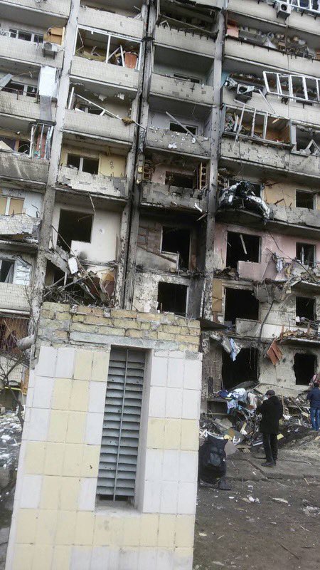 This is the apartment building in Kyiv I was registered to as a newborn. It got hit. My family still living there survived. Posting this is very painful, to be honest, and I’m sure trolls will be mean. But I post it to show how very real and deeply sad things are Слава Україніpic.twitter.com/6ZaF8wGWsm