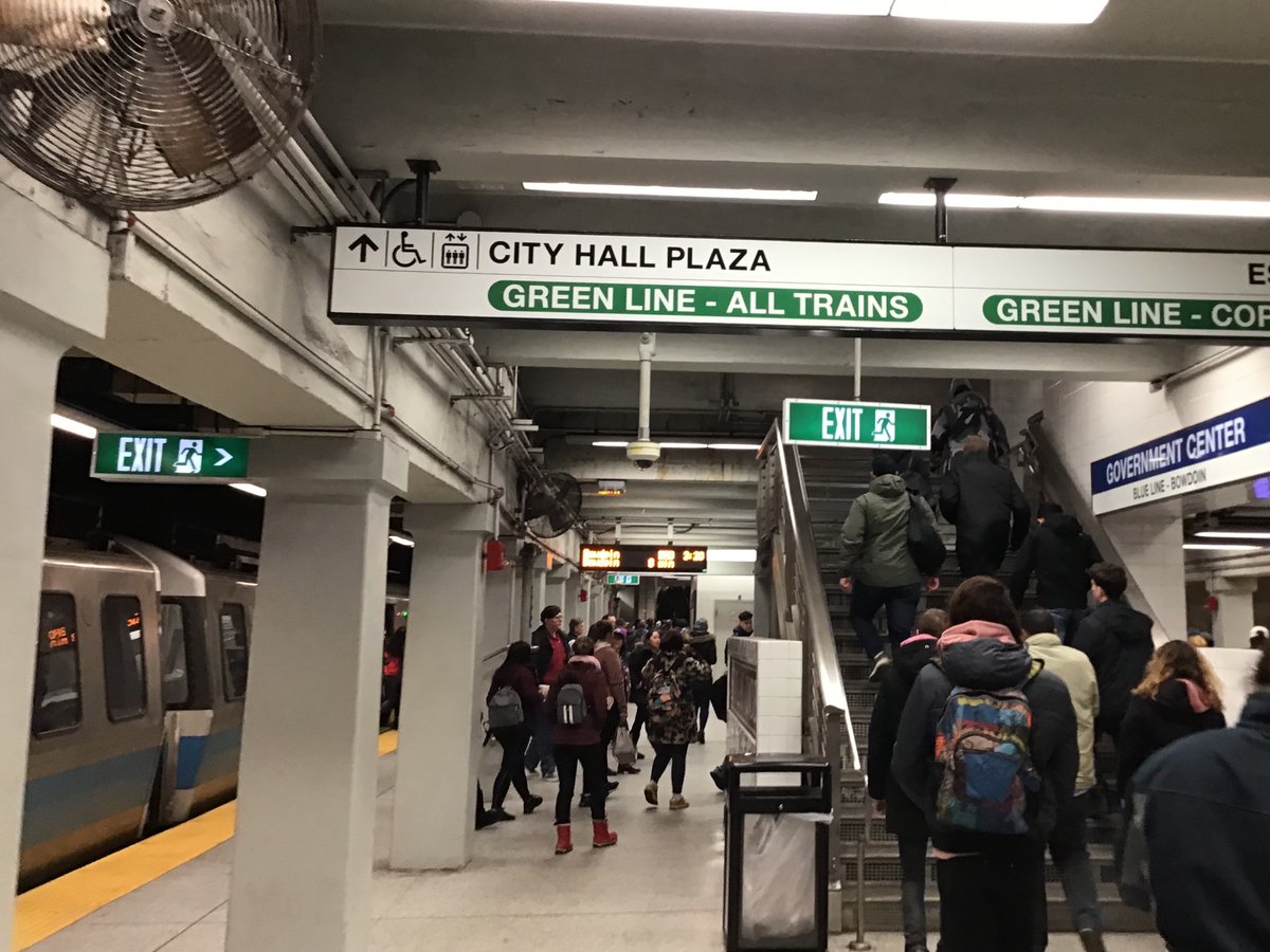 the cards came with a free tour of the MBTA, so i present to you the four T trains of the apocalypse: (really love how they brand the trains by line colour, also caught a rare B train at Gov Ctr!)