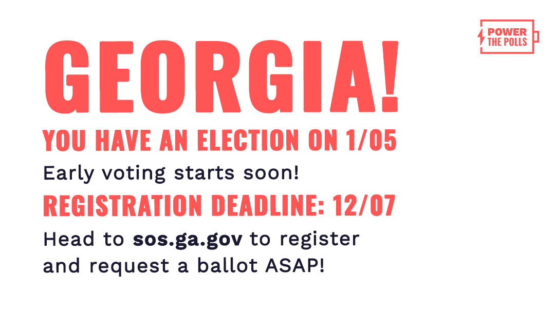 Attention Georgia voters! You have an election coming up on 1/05, but early voting starts soon! To vote-by-mail, submit a new ballot request ASAP, even if you requested one for the general election. Make sure you're registered + by 12/07 at !
