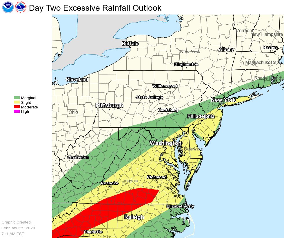 There is an increasing likelihood for excessive rain on Thursday into Thursday night for southern and coastal parts of the Mid-Atlantic... especially in southern Virginia.