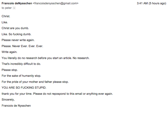 Sunday morning fan mail! Also, apologies in advance, Francois - and, of course, humanity. I must continue to write.pic.twitter.com/pKi4YuB2Ua