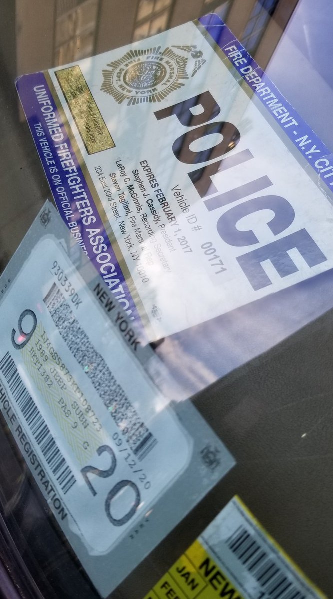 @UFANYC "POLICE"#fakeplacard with an expired date on it is not a@NYPDnews authorized vehicle. It's just more#placardcorruption.pic.twitter.com/mrMonPU7oM