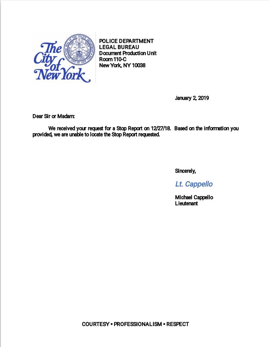So after @NYPDPBMN Officer Valerio unlawfully stopped our contributor to violate his civil rights, he did not file the required Stop Report. How many laws are you letting this guy break, @NYPDONeill? @OIGNYPD? #righttoknowpic.twitter.com/zK5PZi8gQ9