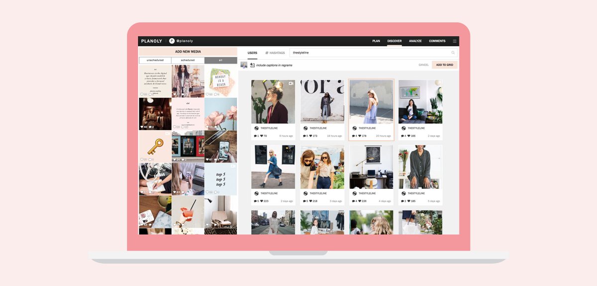 Use Planoly's Discover feature to search images by IG's or hashtags & repost them on your grid!