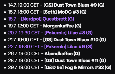 Neue Schedule für den Rest des Monats! Hoffentlich klappt alles!