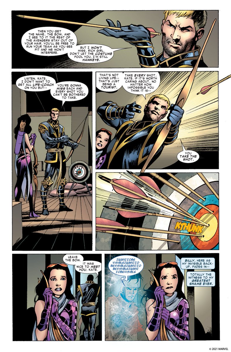 Clint first officially met Kate face-to-face in Young Avengers Presents (2008) #6 after she took on the Hawkeye mantle (and his old bow!). As his first lesson to Kate, Clint taught her to shoot without hesitation. And so began their mentor-student friendship!pic.twitter.com/c1c9rBsi36