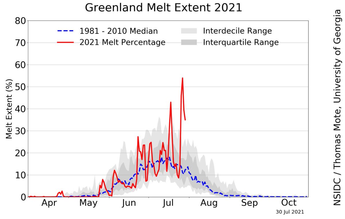#Grönland. In den letzten Tagen gab's in mehr als der Hälfte der Insel Tauwetter! Am 29. Juli wurden an einem Flughafen im Nordosten Grönlands 23,4 Grad gemessen.pic.twitter.com/gvZvcHA8ys