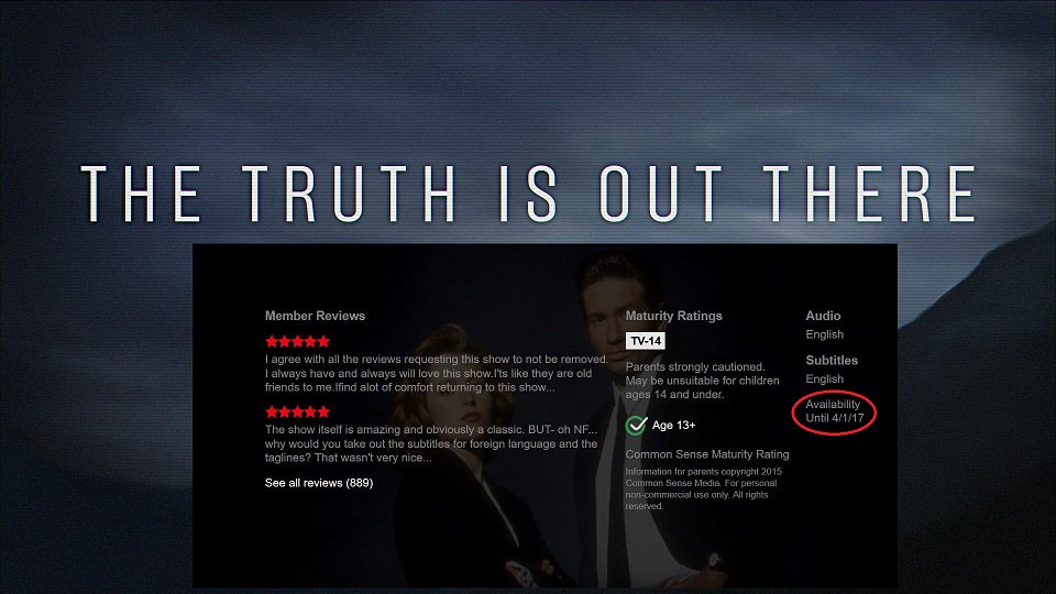 The X-Files is expiring from Netflix on 4/1-Record with PlayOn before it leaves. PlayOn recordings never expire.