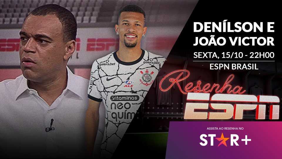 TEM NOVIDADE NO #ResenhaESPN! Nesta sexta-feira,@plihalespn recebe o ex-jogador Denílson e João Victor, zagueiro do Corinthians, em um novo cenário!
