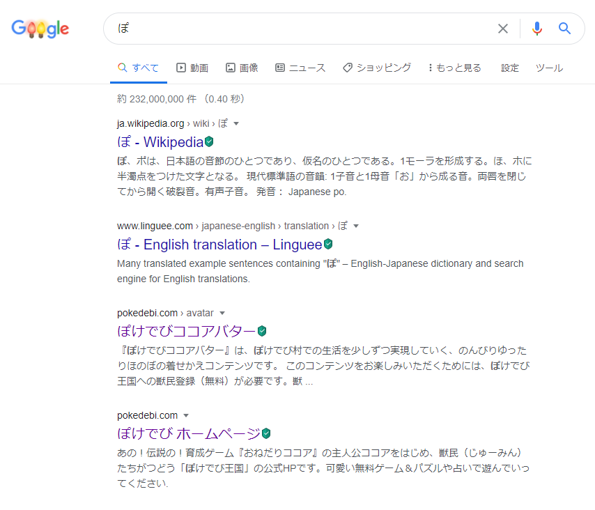 【速報】 「ぽ」一文字だけでGoogle検索すると、三番目と四番目にぽけでびが表示されるようになりました。 ぽけでびはもはや「ぽ」の代表選手になったと言っても過言ではありますまい。pic.twitter.com/mPigGBh2bp