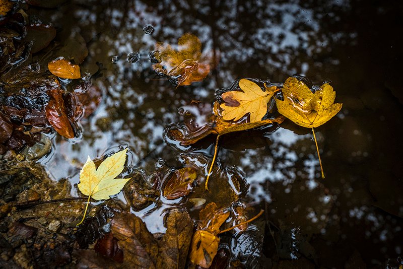 Autumn puddle with colorful leaves. http://polarpx.com