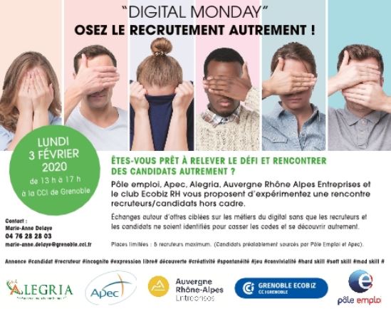 Expérimentez des rencontres d'un nouveau type pour trouver vos futurs #talents dans le#numérique C'est ce que propose#DigitalMonday#Grenoble avec@GrenobleEcobiz@AURAentreprises@ApecAura@poleemploi_ara#innovation#RH#AvecPoleEmploipic.twitter.com/QyYRhICRLt