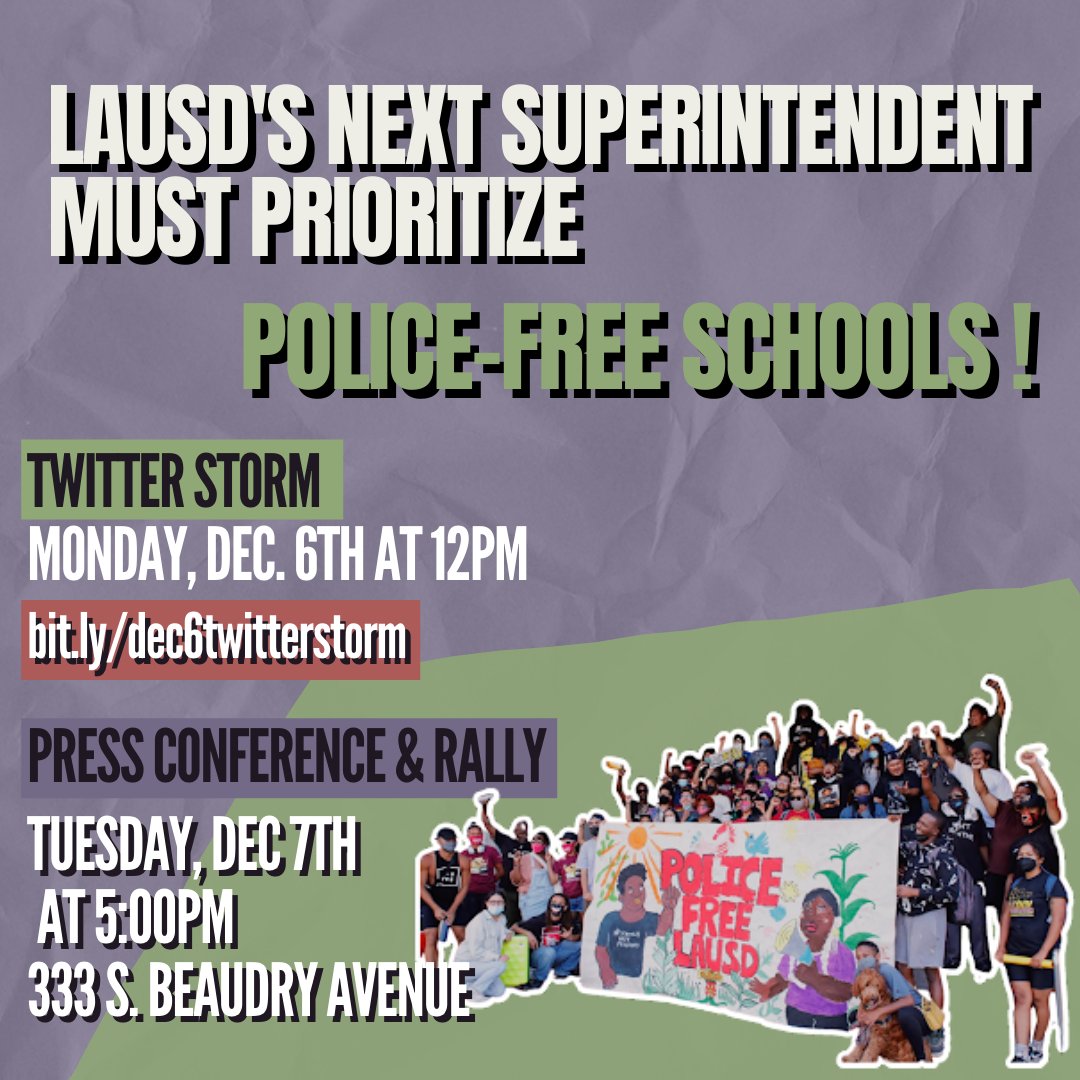 @LASchools spends more on police, guns, and ammunition than any school district in the country. We need a Superintendent with a vision for#PoliceFreeSchools! Join us on 12/7 @ 5pm outside of LAUSD Headquarters!