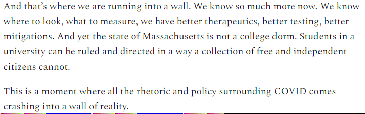 At some point, human behavior changes. We saw that over the summer in the Sun Belt. Some people are changing their behavior now, more will as the spread gets closer and closer to home, some just won't. It's going to be regrettable that more didn't sooner....
