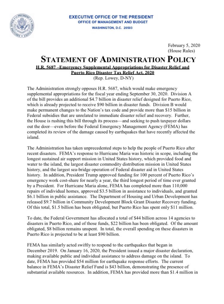 Casa Blanca manifiesta su oposición a nuevos fondos para Puerto Rico | Metro Gracias a Dios que a JGo la respetan en Washington, que si no...https://www.metro.pr/pr/noticias/2020/02/05/casa-blanca-manifiesta-oposicion-nuevos-fondos-puerto-rico.html …