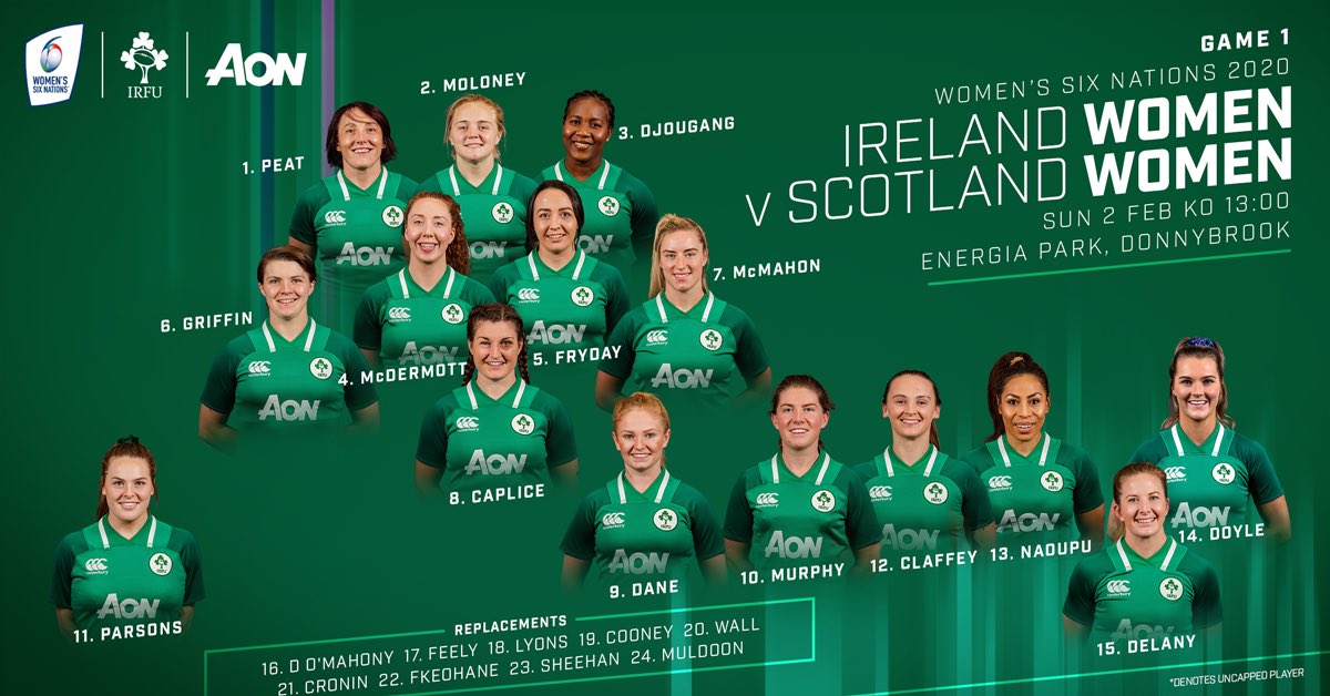 #IrelandWomen Here’s the Ireland team to play Scotland in the opening round of the@Womens6Nations at a Energia Park on Sunday.#shouldertoshoulder#cantseecantbe#womens6nationspic.twitter.com/Psuol0hHaO