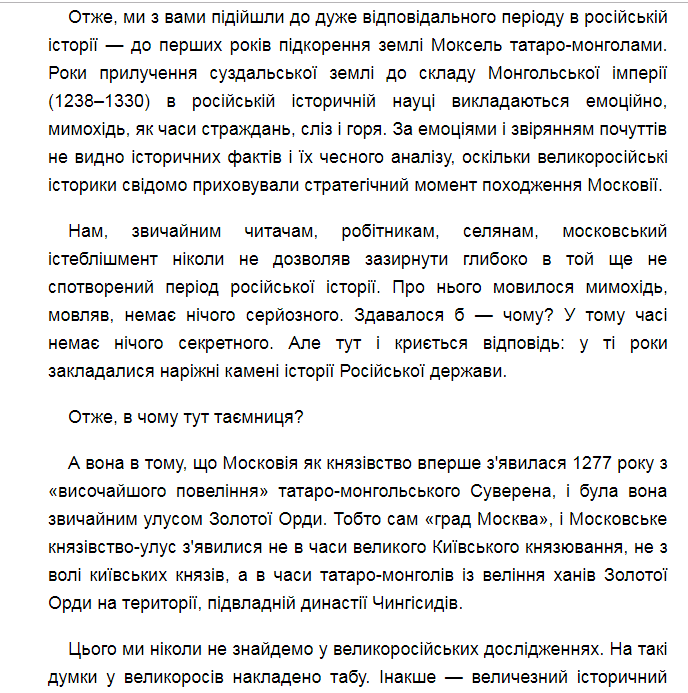 Путін вважає, що української мови не має існувати. Що української нації не має існувати, що ми з ним – один народ, така собі покалічена західними впливами гілка росіян. Путін вважає, що православна церква має бути тільки Московського патріархату.