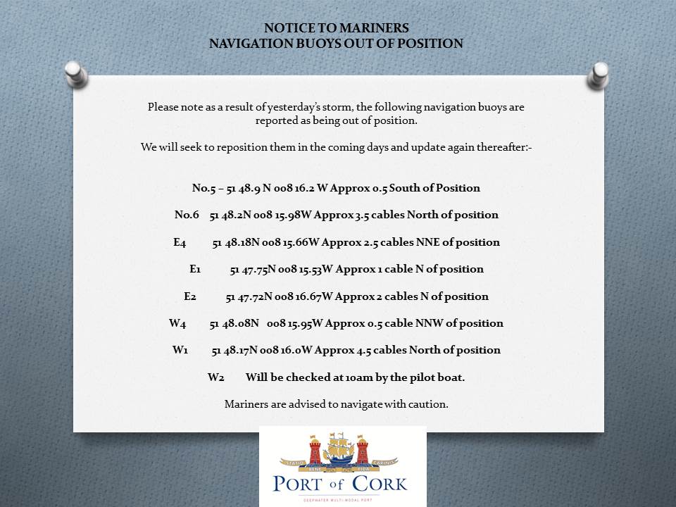 NOTICE TO MARINERS - Navigation Buoys out of position in