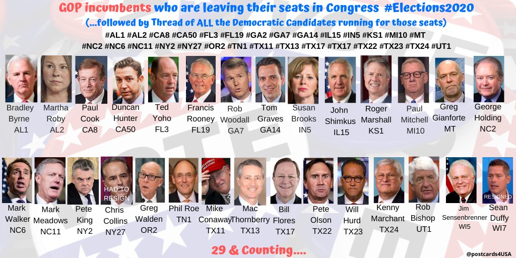 Re-election rate of all 435 House Congress rarely dips below 90%. GOP Incumbents departing in: