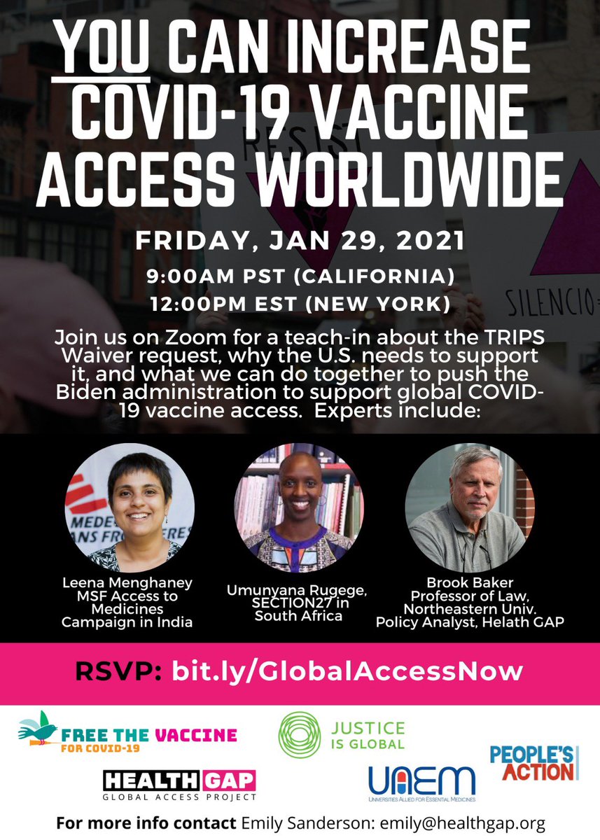 Last chance to sign-up for today's teach-in! Vaccine inequality is manufactured--it doesn't have to be that way. We'll be talking about what we can do together to win equitable global vaccine access. Sign-up now: http://bit.ly/GlobalAccessNow pic.twitter.com/zDrdCEUK9f