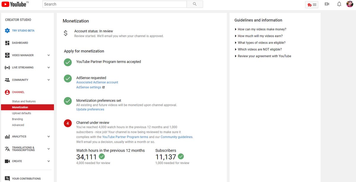 screenshot of my channel's 'Status and features' pagepic.twitter.com/tVRaftRwzU