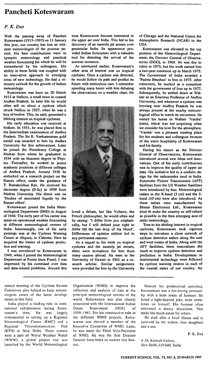Happy Weatherman Day wishes to all Weatherman / Weather bloggers on February 5th. This year we remember the Padma Bhushan awardee Thiru.Pancheti Koteswaram. A tribute by Mr.P.K.Das on Koteswaram is in picture. https://www.facebook.com/tamilnaduweatherman/posts/2765142943712972 …pic.twitter.com/uPuZYYTNcM