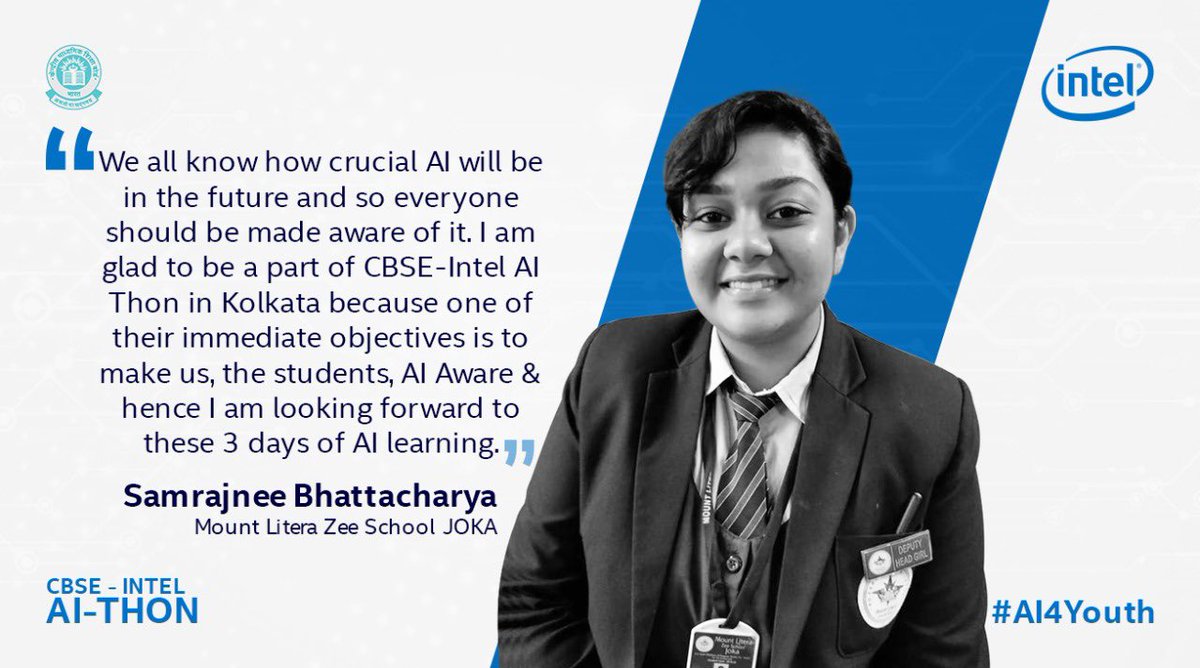 @MountLiteraZee, Joka speaks about the necessity of being#AI aware these days. She is always excited to learn more about AI & it’s various forms and hence was a part of CBSE-Intel#AIThon,#Kolkata#IntelIndia#CBSE#AI4Youthpic.twitter.com/Te68y81zXN
