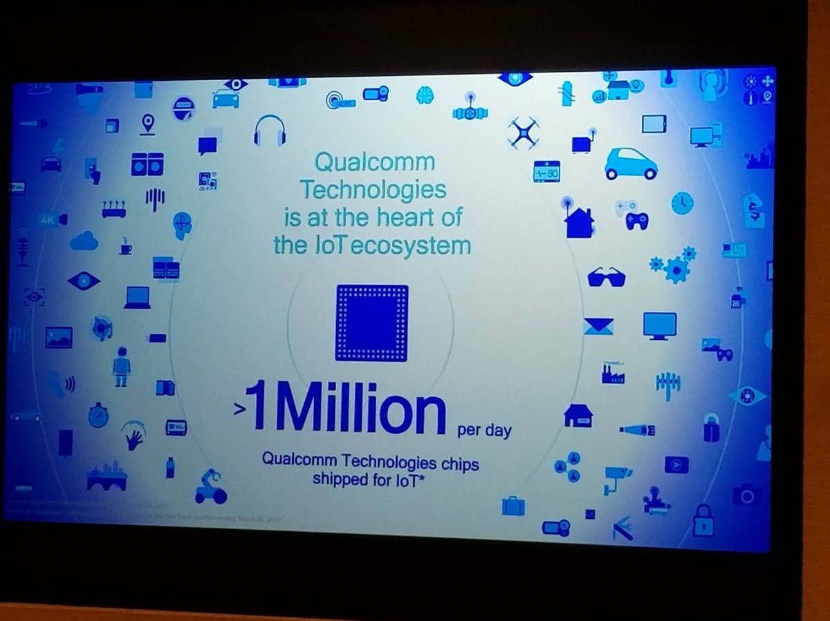 @Qualcomm now shipping more than 1 million chips per day into#iot, including#connectedcars#Wearables#smarthome#dronepic.twitter.com/qFE82UUJLx – at Qualcomm SJO.E