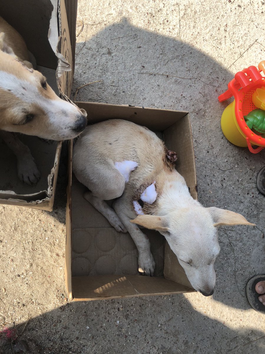 We called several rescues, but this being NYE, no one could arrange for the pups to be picked up. By now, the sun was setting. The pups were fed, given first aid, and were in pain. We decided to take them back to our resort. They were terrified and cold. 4/n