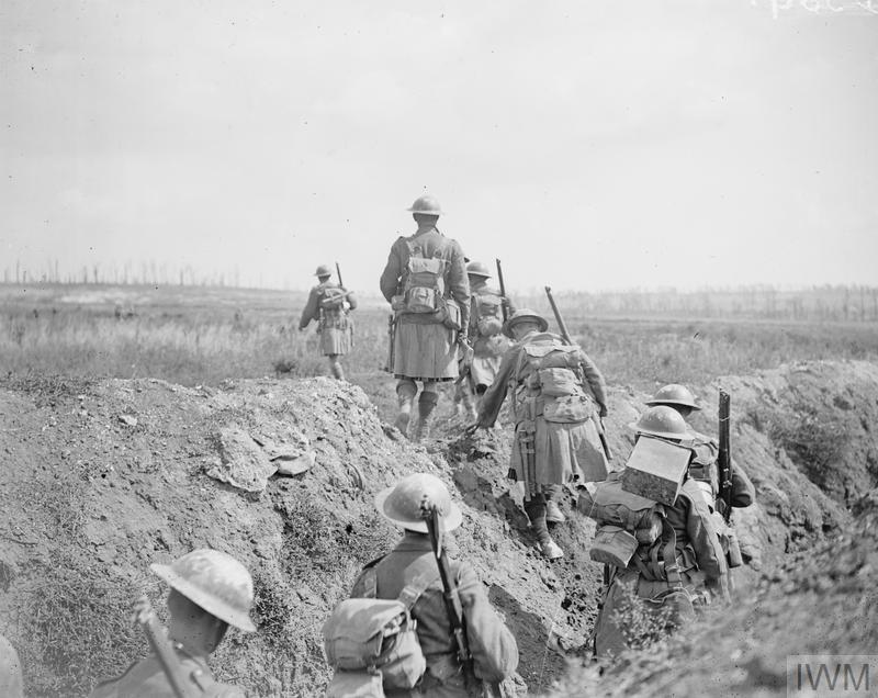 Aug 29, 1918 - Daylight patrol of Scottish troops leaving their lines and approaching German trenches, near Roeux east of Arras, France