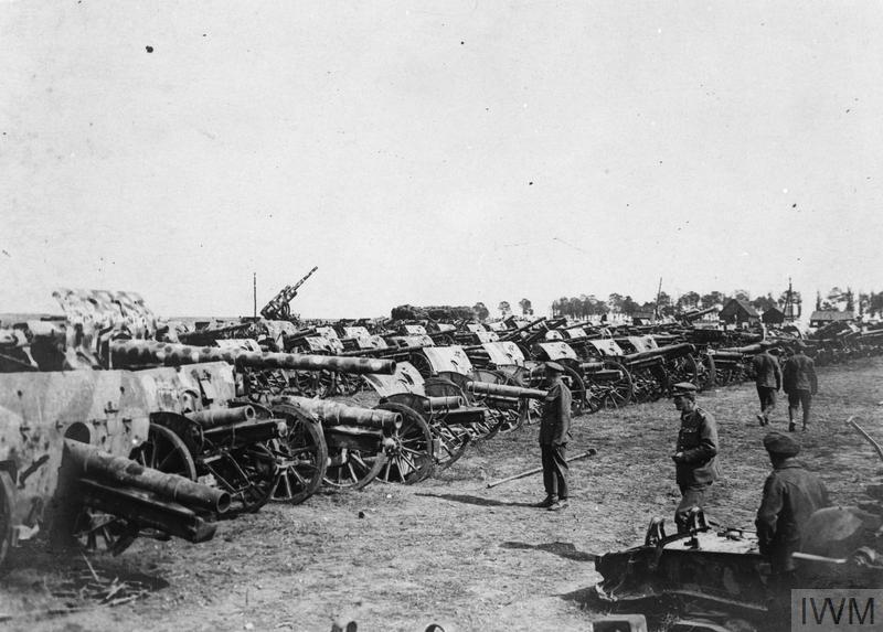 Aug 29, 1918 - German artillery and anti-aircraft guns captured by British at recent Battle of Amiens, assembled just outside the city at a dump at Longueau