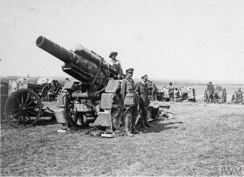 Aug 29, 1918 - Battery of British 8-inch howitzers in action on the roadside Saint-Léger, in the Somme Sector, France