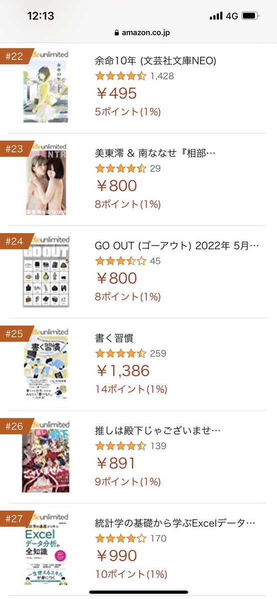 意外となかなかならないカテゴリー 1位2位! 『相部屋NTR』 https://www.amazon.co.jp/dp/B09YTN56JW 『えちえちLOOK BOOK』 https://www.amazon.co.jp/dp/B09PFMNMKL 『相部屋NTR』はKindle全体でも現在23位!並びのNTR違和感! 仁藤りささん