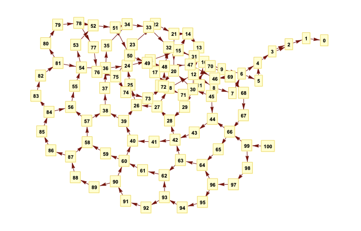 Wow! This is the graph of the outputs of 2 <-- 3 machine under the operations of A: add of dot and explode or B: multiply by 1.5. Love that there is necessarily a Hamiltonian path! Which nodes are degree 3? Which degree 4?https://twitter.com/matthen2/status/1220378854126247936 …