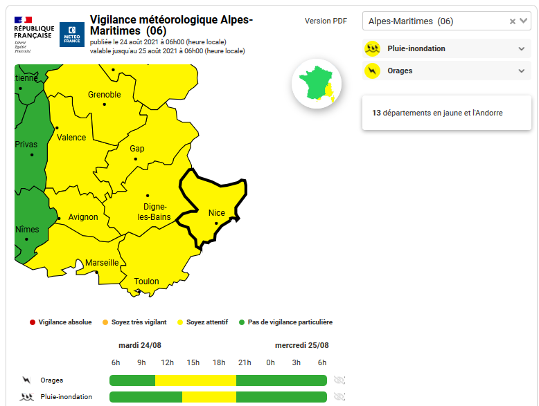 « orage » ce jour, mercredi 4 août, de 12h à 23h.