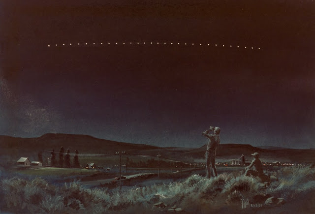 i wonder which one is the original, did boeing/doe/nasa downplay the prominence of the reflectors in the art or did someone add extraordinarily bright stars in as commentary?