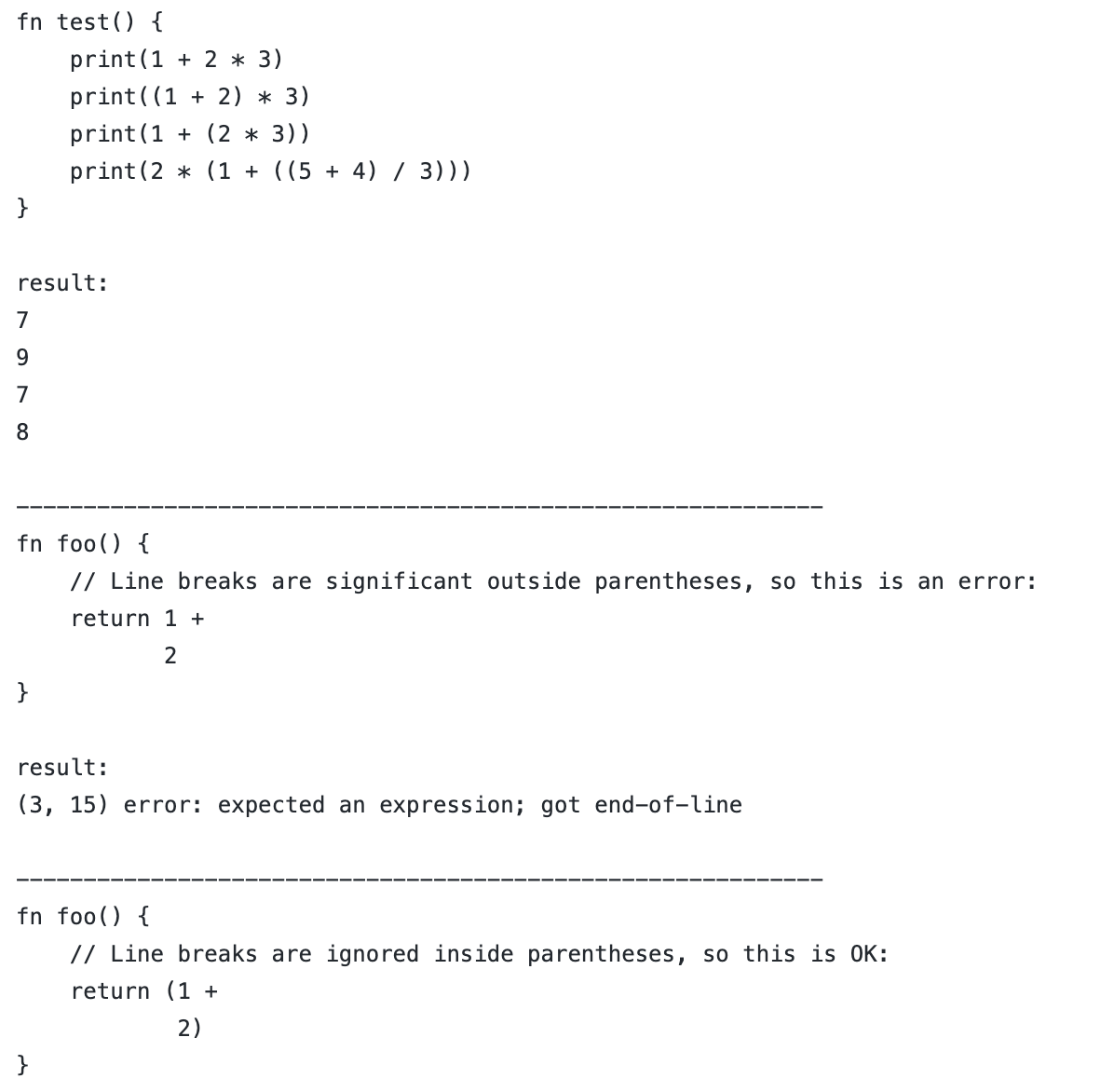 Also, line breaks usually indicate the end of a statement, but that gets turned off inside parentheses.pic.twitter.com/6ZqmVcXOAW