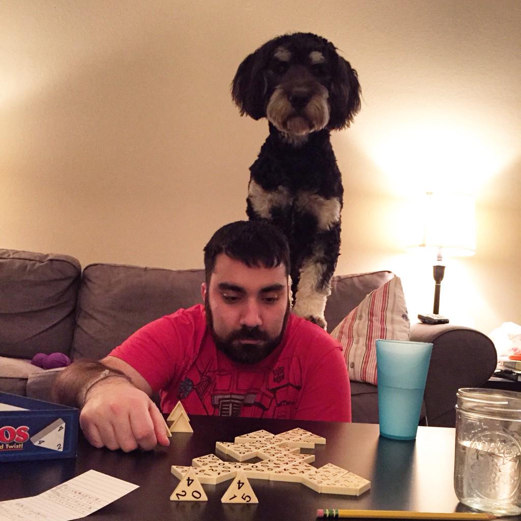 #aww RT @fabulousmsmoxie: Bogart is the official TriOminos referee. He calls foul on @JimViscardi. 52/365 #365projectpic.twitter.com/WaL0icwcuT