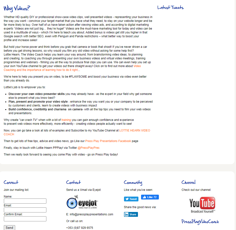 Had my on-camera presentation coaching site http://pressplaypresentations.com