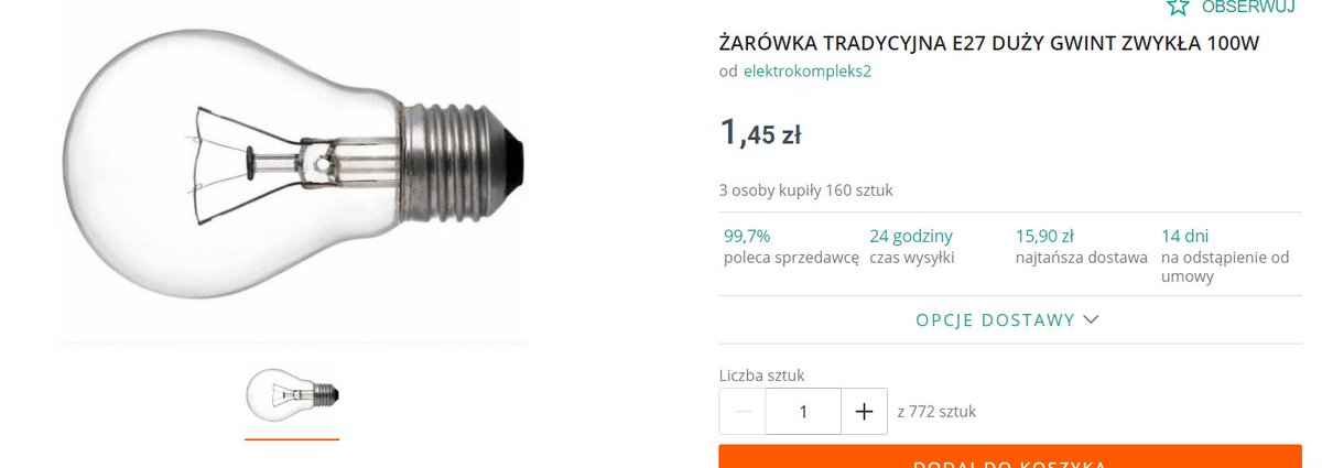 Panie Prezydencie, mam dwie klasyczne żarówki 60W. Oddam za darmo. Proszę o kontakt gdyby były potrzebne.