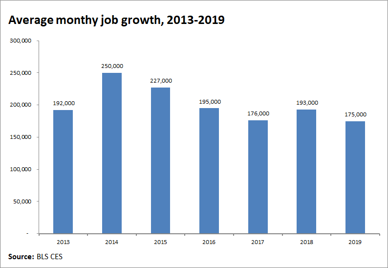 Now that all the dust has settled on the benchmark revisions, here are the annual job growth rates in recent years. 2019 ended up with an average annual job growth rate of 175,000 -- very solid, but the lowest level in 6 years (by a hair).pic.twitter.com/PxI4NraBwp