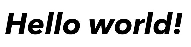 Quickly generate a text image by invoking chrome from the terminal. cat <<EOL > foo.html && chrome --headless --screenshot --window-size=320,80 --hide-scrollbars foo.html <html><i style="font-family:'Avenir Next';font-size:50px;font-weight:700">Hello world!</i></html> EOLpic.twitter.com/JmoaK7uC7H